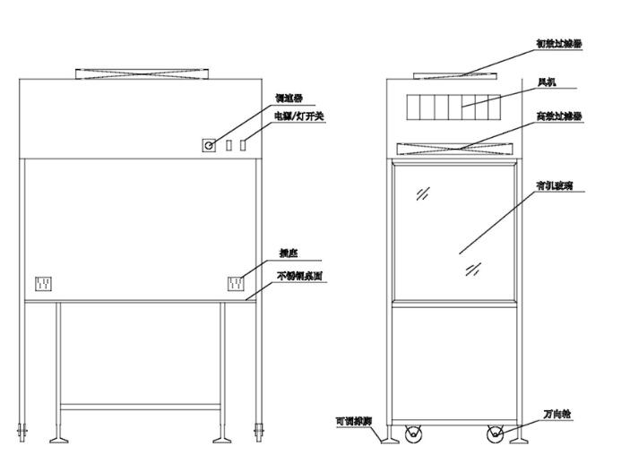 超凈工作臺:是自控工作單元適用于水平或垂直薄片的流動潔凈模型,能被放置于潔凈室以創造一個極其潔凈的工作環境,或者用于為一些不需要全部潔凈的小單元來提供獨立的清潔環境。
